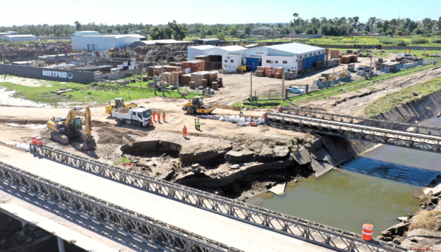 En esta instancia, según informó la administración, se trata de dos puentes Bailey que permiten la circulación de vehículos livianos en los cruces de Malvinas y Santa Cruz, tras el colapso de las estructuras originales de hormigón. Los puentes fueron instalados por el Ejército como una solución temporal mientras se proyectan las obras de reconstrucción definitivas.